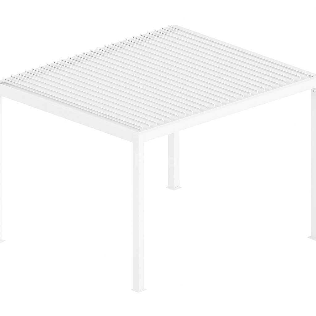 A pergola tetejét 150 mm széles, elforgatható alumínium lamellák alkotják, amelyek 0° és kb. 120° közötti szögben állíthatók. Ez lehetővé teszi a fény és a légáramlás szabályozását az Ön igényei szerint. Zárt állapotban a lamellák sík felületet alkotnak, és hatékonyan elvezetik az esővizet az oszlopokba integrált ereszcsatornákba.